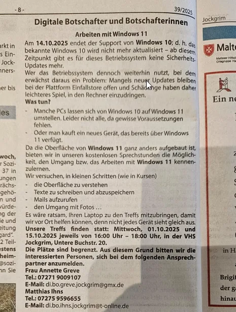 Am 14.10.2025 endet der Support von Windows 10, d. h. das bekannte Windows 10 wird nicht mehr aktualisiert – ab diesem Zeitpunkt gibt es für dieses Betriebssystem keine Sicherheits-Updates mehr.